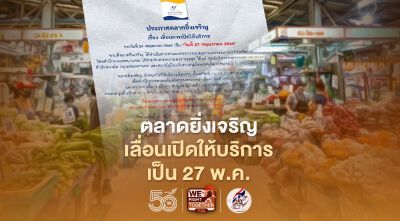 "ตลาดยิ่งเจริญ" เลื่อนเปิดให้บริการเป็น 27 พ.ค. 64