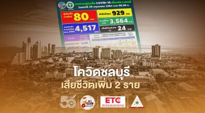 รายงานสถานการณ์โควิด-19 'ชลบุรี' วันนี้ ( 29 พ.ค.) ติดเชื้อรายใหม่ 80 ราย เสียชีวิตเพิ่ม 2 ราย ป่วยสะสม 4,517 ราย ส่วนใหญ่พบติดจากชุมชนพักอาศัยแรงงานต่างด้าว โรงงาน เช็ค !อัพเดทสถานที่เสี่ยงติดเชื้อเพิ่ม