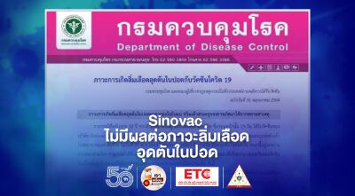 กรมควบคุมโรคเผยวัคซีน Sinovac ไม่เกี่ยวกับภาวะลิ่มเลือดอุดตันในปอด ยันไม่ต้องหยุดยาคุมกำเนิด ระบุไม่มีหลักฐานว่าเกี่ยวข้องกับการฉีดวัคซีน