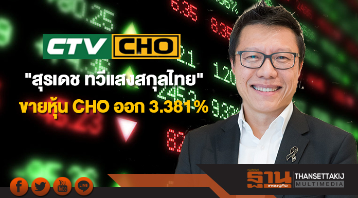 ก.ล.ต.ได้รับแจ้งจาก "สุรเดช ทวีแสงสกุลไทย" จำหน่ายหุ้น CHO สัดส่วน 3.381% เหลือถือ 43.642%