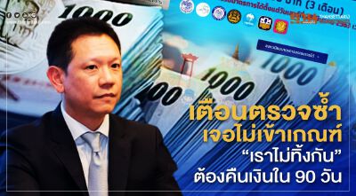 เตือนตรวจซ้ำเจอไม่เข้าเกณฑ์ "เราไม่ทิ้งกัน"ต้องคืนเงินใน 90 วัน