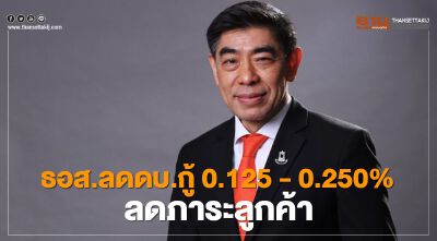 ธอส.ลดภาระลูกค้าสินเชื่อบ้านประกาศลดดอกเบี้ยเงินกู้ 0.125% - 0.250% ต่อปี
