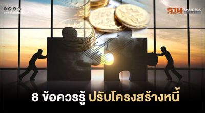 การปรับปรุงโครงสร้างหนี้เป็นทางเลือกที่ช่วยให้ท่านดำเนินชีวิตหรือธุรกิจได้อย่างต่อเนื่องหลังสถานการณ์โควิด 19 แบงก์ชาติจึงสนับสนุนให้ลูกหนี้และสถาบันการเงินร่วมมือกันในการเจรจาปรับโครงสร้างหนี้และหาทางออกร่วมกัน ลดโอกาสที่ลูกหนี้ดีจะกลายเป็นลูกหนี้เสีย