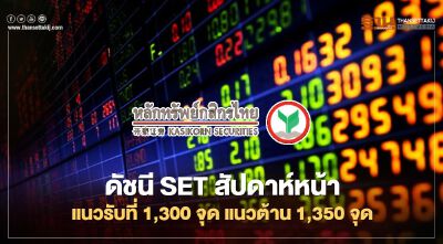 สำหรับสัปดาห์ถัดไป (7-11 ก.ย.) บริษัทหลักทรัพย์กสิกรไทย จำกัด มองว่า ดัชนีหุ้นไทยมีแนวรับที่ 1,300 และ 1,285 จุด ขณะที่แนวต้านอยู่ที่ 1,325 และ 1,335 จุด ตามลำดับ โดยปัจจัยสำคัญที่ต้องติดตาม ได้แก่ ประเด็นการเมืองในประเทศ มาตรการกระตุ้นเศรษฐกิจในประเทศเพิ่มเติม สถานการณ์โควิด-19 และความสัมพันธ์ระหว่างสหรัฐฯ-จีน ส่วนข้อมูลเศรษฐกิจสหรัฐฯ ที่สำคัญ ได้แก่ ดัชนีราคาผู้ผลิตและดัชนีราคาผู้บริโภคเดือนส.ค. ขณะที่ ปัจจัยต่างประเทศที่สำคัญอื่นๆ ได้แก่ การประชุมธนาคารกลางยุโรป จีดีพีไตรมาส 2/63 ของญี่ปุ่นและยูโรโซน และข้อมูลเศรษฐกิจเดือนส.ค. ของจีน