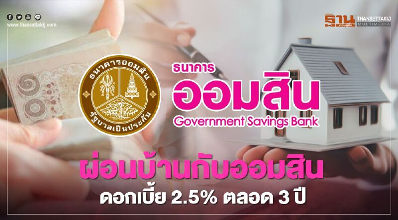ผ่อนบ้านกับออมสิน ดอกเบี้ย 2.5% ตลอด 3 ปี