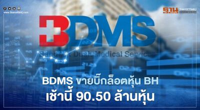 BDMS ทำรายการขายบิ๊กล็อตหุ้น BH ล็อตแรกแล้ววันนี้ 90.50 ล้านหุ้น ราคาหุ้นละ 103 บาท มูลค่า 9.32 พันล้านบาท เร็วกว่าที่แจ้งตลท.ฯว่าจะทำรายการวันที่ 26 พ.ย.