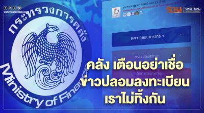 "คลัง" เตือนอย่าหลงเชื่อข่าวปลอมลงทะเบียนเราไม่ทิ้งกันรอบใหม่