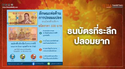 โดยประชาชนสามารถตรวจสอบธนบัตรด้วย 3 วิธีง่าย ๆ คือ สัมผัส ยกส่อง พลิกเอียง โดยมีจุดสังเกตที่สำคัญ เช่น ความนูนของการพิมพ์บอกชนิดราคาที่มุมธนบัตรและคำว่ารัฐบาลไทย ลายน้ำ แถบสีที่มีภาพเคลื่อนไหว และหมึกพิมพ์แม่เหล็กสามมิติเปลี่ยนสีได้ เป็นต้น