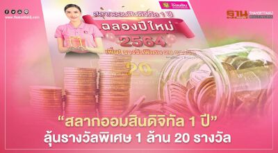 เปิดขายวันนี้! สลากออมสินดิจิทัล 1 ปี เพิ่มรางวัลพิเศษ 20 รางวัล รางวัลละ 1 ล้านบาท เปิดขายผ่านแอป MyMo ตั้งแต่วันนี้ถึง 15 มี.ค. 64