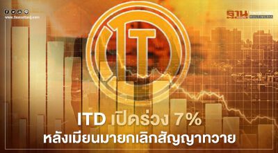 ราคาหุ้น ITD เปิดลดลง 7.01% รับรัฐบาลเมียนมาบอกเลิกสัญญาโครงการทวาย 7 ฉบับ หลังผิดเงื่อนไข พร้อมเตรียมโต้แย้งด่วน