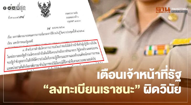 เตือน เจ้าหน้าที่รัฐ  "ลงทะเบียนเราชนะ" ผิดวินัย