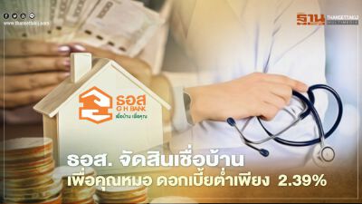 ธอส. จัดสินเชื่อบ้านเพื่อคุณหมอ ดอกเบี้ยต่ำเพียง 2.39%