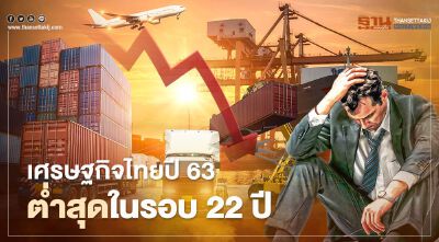 สศช.เผย"จีดีพี" ปี 63 ต่ำสุดในรอบ 22 ปี ห่วง 5 ปัจจัยเสี่ยงทุบซ้ำศก.ปี 64