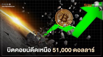 ราคาบิตคอยน์ดีดตัวเหนือ 51,000 ดอลลาร์ หรือราว 1.53 ล้านบาทช่วงเช้านี้ ขานรับมุมมองบวกของซีอีโอ ARK Investment และเฟดเดินหน้านโยบายผ่อนคลายทางการเงิน