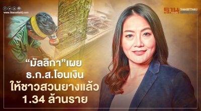 "มัลลิกา"เผยธ.ก.ส.โอนเงินให้ชาวสวนยางแล้ว 1.34 ล้านราย