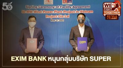 EXIM BANK จัด 2.3 พันล้านบาทสนับสนุนกลุ่มบริษัท SUPER พัฒนาโรงไฟฟ้าพลังงานลมแห่งใหม่ในเวียดนาม ตามแนวนโยบายสร้างอุตสาหกรรมใหม่เพื่ออนาคต