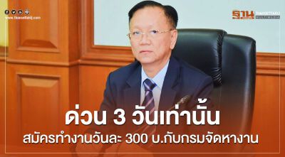 ด่วน 3 วันเท่านั้นสมัครทำงานวันละ300บ.กับกรมจัดหางาน