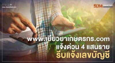 เช็กด่วน www.เยียวยาเกษตรกร.com กว่า 4 แสนราย รีบแจ้งเลขบัญชี
