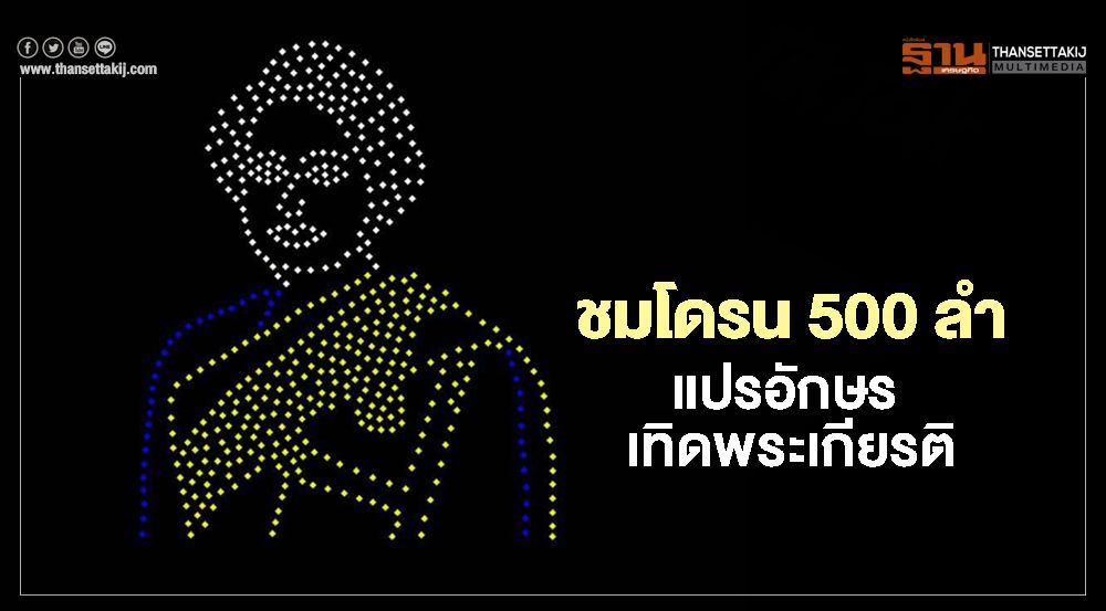 การแสดงโดรนแปรอักษร (Drone Light Show) ในครั้งนี้ จะจัดขึ้น ณ สนามฟุตบอล มหาวิทยาลัยธรรมศาสตร์ ท่าพระจันทร์ เวลาประมาณ 19.15 น. (หลังเสร็จพิธีจุดเทียนถวายพระพรชัยมงคล) โดยใช้โดรน จำนวน 500 ลำ ขึ้นบินแปรขบวนแสงสีบนท้องฟ้า แปรอักษรเป็นรูปต่างๆ จำนวน 11 แบบ ใช้เวลาในการแสดง ประมาณ 12.12 นาที