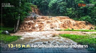 เช็กด่วน 10 จังหวัด 46 อำเภอทั่วไทยต้องเฝ้าระวังเหตุดินถล่ม -น้ำป่าไหลหลาก ระหว่างวันที่ 13 - 15 ตุลาคมนี้