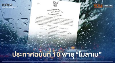 กรมอุตุฯออกประกาศฉบับที่ 10 แจ้งเตือน"พายุโมลาเบ” อ่อนกำลังลงเป็นพายุดีเปรสชัน ประเทศไทยตอนบนมีฝนเป็นบริเวณกว้าง และมีฝนตกหนักถึงหนักมากบางแห่ง