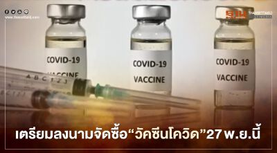 น.ส.ไตรศุลี ไตรสรณกุล รองโฆษกประจำสำนักนายกรัฐมนตรี เปิดเผยว่า ในวันที่ 27 พ.ย. พล.อ.ประยุทธ์ จันทร์โอชา นายกรัฐมนตรีและ รมว.กลาโหม จะเป็นประธานพิธีลงนามในสัญญาการจัดหาวัคซีนโควิด-19 โดยการจองล่วงหน้าและสัญญาการจัดซื้อวัคซีน กับบริษัท แอสตร้าเซเนก้า ผู้ผลิตชีวภัณฑ์ชั้นนำสัญชาติอังกฤษ-สวีเดน หลังจากที่ประชุมคณะรัฐมนตรี (ครม.) เมื่อวันที่ 17 พ.ย.เห็นชอบโครงการจัดหาวัคซีนป้องกันโรคติดเชื้อไวรัสโคโรนา 2019 สำหรับประชาชนไทยโดยการจองล่วงหน้าและการจัดซื้อวัคซีนในวงเงิน 6,049,723,117 บาท  โดยให้สถาบันวัคซีนแห่งชาติจัดทำสัญญาการจัดหาวัคซีนโดยการจองล่วงหน้า ภายใต้เงื่อนไขว่ามีโอกาสที่จะได้รับวัคซีนหรือไม่ได้รับวัคซีนดังกล่าว ทั้งนี้ ขึ้นอยู่กับผลการวิจัยพัฒนาหรือเหตุอื่น ๆ ในวงเงิน 2,379,430,600 บาท โดยจะมีการลงนามที่ตึกสันติไมตรี ทำเนียบรัฐบาล