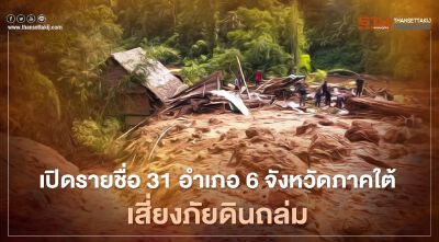 เปิดรายชื่อ 31 อำเภอ 6 จังหวัดภาคใต้เสี่ยงภัยดินถล่ม - น้ำป่าไหลหลากในช่วง 2-3 วันนี้