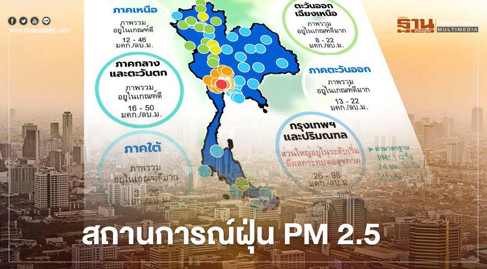 ฝุ่น PM 2.5 กรุงเทพฯ-ปริมณฑลเช้านี้ มีผลกระทบต่อสุขภาพหลายพื้นที่