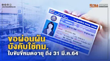 กรมขนส่งฯ ขอผ่อนผันบังคับใช้กม. ละจับกุมใบขับขี่หมดอายุ ถึง 31 มี.ค.64