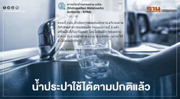 กปน.ประกาศซ่อมท่อเรียบร้อยแล้ว โดยไม่ต้องหยุดจ่ายน้ำ ประชาชนสามารถใช้น้ำได้ตามปกติ