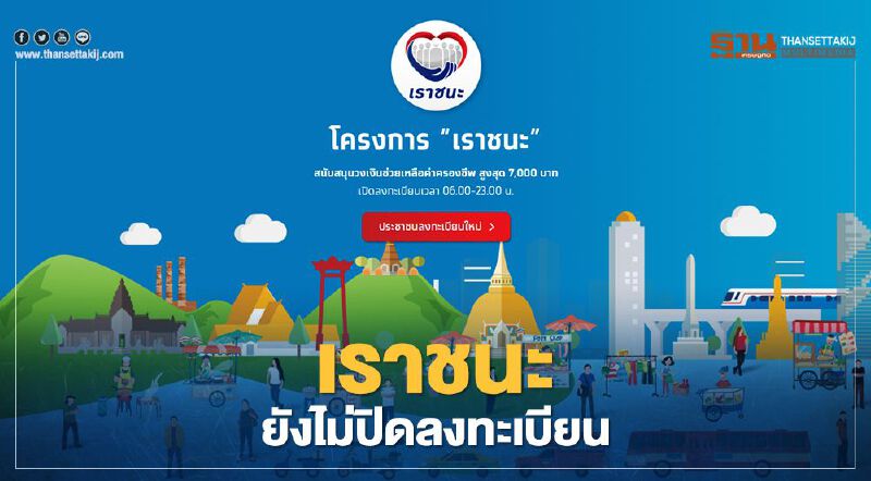 www.เราชนะ.com คลัง เปิดลงทะเบียน"เราชนะ"เพื่อรับสิทธิ์เงินสูงสุด 7,000 บาท