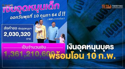 "เงินอุดหนุนบุตร"เดือนกุมภาพันธ์พร้อมโอน