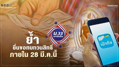 'ม33เรารักกัน' เช็กขั้นตอนยื่นขอทบทวนสิทธิ สำหรับผู้ประกันตนไม่ผ่านรอบแรก ผ่านเว็บไซต์ www.ม33เรารักกัน.com ย้ำภายในวันที่ 15-28 มี.ค.64