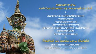 สำนักพระราชวัง แจ้งปิดการเข้าชมพระราชฐาน ตั้งแต่13 เม.ย.นี้