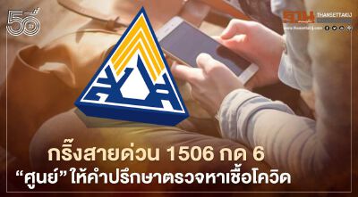 "ประกันสังคม" ตั้ง“ศูนย์” ให้คำปรึกษาแก่ผู้ประกันตนตรวจหาเชื้อโควิด-19 กริ๊งสายด่วน 1506 กด 6 พร้อมเล็งขยายจุดตรวจหาเชื้อโควิดยังจังหวัดพื้นที่สีแดง เร็วๆนี้