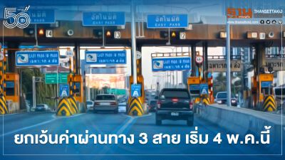 กทพ.เตรียมยกเว้นค่าทางด่วน 3 เส้นทาง ภายในวันที่4 พ.ค.นี้ หวังอำนวยความสะดวกประชาชนช่วงวันหยุดยาว