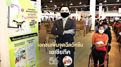 การฉีดวัคซีนให้กับพี่น้องประชาชนคนไทยนับว่าเป็นภารกิจเร่งด่วนที่จะทำให้เราสามารถหยุดยั้งการแพร่ระบาดของ COVID-19 ได้เร็วที่สุด ทำให้จุดบริการฉีดวัคซีนนอกโรงพยาบาลเป็นหัวใจสำคัญในการขับเคลื่อนภารกิจนี้ ล่าสุด แอสเสท เวิรด์ คอร์ปอเรชั่น หรือ AWC ได้เสนอพื้นที่ เอเชียทีค เดอะ ริเวอร์ฟร้อนท์ เป็นหนึ่งในจุดบริการฉีดวัคซีนขนาดใหญ่สำหรับประชาชน โดยมี AIS ในฐานะพันธมิตร ร่วมเดินหน้าสู้ภัย COVID-19 เชื่อมต่อการทำงานภายในพื้นที่ เอเชียทีคฯ ด้วยการนำสัญญาณเครือข่าย พร้อมทั้ง Digital Service ด้วยระบบ “จองสบาย” อำนวยความสะดวกให้กับคนไทย รวมถึงเสริมประสิทธิภาพการทำงานกับบุคลากรทางการแพทย์ในการฉีดวัคซีนลดความเสี่ยงจากการแออัด พร้อมสร้างภูมิคุ้มกันให้กับประเทศ