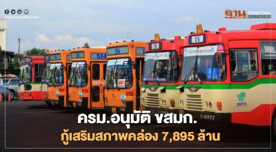 ผู้สื่อข่าวรายงานว่า วันนี้ (13 สิงหาคม 2563) นางสาวไตรศุลี ไตรสรณกุล รองโฆษกประจำสำนักนายกรัฐมนตรี เปิดเผยว่า ที่ประชุมคณะรัฐมนตรี(ครม.) อนุมัติให้ องค์การขนส่งมวลชนกรุงเทพ (ขสมก.) กู้เงินเพื่อเสริมสภาพคล่องทางการเงินประจำปีงบประมาณ 2564 จำนวน 7,895 ล้านบาท โดยมี กระทรวงการคลัง เป็นผู้ค้ำประกันเงินกู้ ซึ่งที่ผ่านมานั้น ครม.เคยมีมติอนุมัติให้ ขสมก. กู้เงินรวม 70,502 ล้านบาท รายละเอียดดังนี้