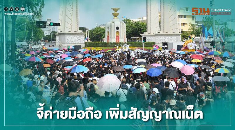 ม็อบกลุ่ม “ประชาชนปลดแอกพรึ่บแน่นอนุสาวรีย์ประชาธิปไตย จนต้องปิดการจราจร ผู้ชุมนุมโวยสัญญาณมือถือ-อินเตอร์เน็ตแย่ เรียกร้องผู้ให้บริการปล่อยสัญญาณเพิ่มด่วน