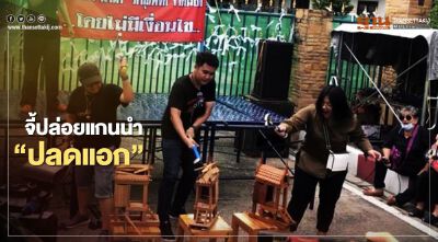 และได้ทำกิจกรรมเชิงสัญลักษณ์ ด้วยการนำศาลพระภูมิไม้จำลอง 3 หลัง มาตั้งหน้าเวที และให้แกนนำที่ถูกดำเนินคดีอาญามาตรา 116 จำนวน 3 คน นำโดย น.ส.จุฑาทิพย์ ศิริขันธ์ หรือ อั๋ว ประธานสหภาพนักเรียนนิสิตนักศึกษาแห่งประเทศไทย (สนท.) , น.ส.สุวรรณา ตาลเหล็ก แกนนำกลุ่ม 24 มิถุนา เพื่อประชาธิปไตย และ นายนายกรกช แสงเย็นพันธ์ หรือ ปอ ใช้ค้อนทุบศาล เพราะไม่เชื่อในกระบวนการยุติธรรม