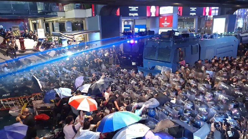พ.ต.อ.กฤษณะ พัฒนเจริญ รองโฆษก ตร. ชี้แจงการเข้าควบคุมการชุมนุมของกลุ่มคณะราษฎรที่แยกปทุมวัน ตำรวจใช้ขั้นตอนจากเบาไปหาหนัก หลังมีการฝ่าฝืน จึงเข้าควบคุมพื้นที่ตามมาตรการ ใช้เครื่องมือและอุปกรณ์ที่ไม่ใช่การพกพาอาวุธ มีเพียงอุปกรณ์ป้องกันตัว และรถฉีดน้ำแรงดันสูง ซึ่งเป็นเครื่องมือสากลที่ทั่วโลกใช้ ไม่มีการใช้กระสุนยางและแก๊สน้ำตา แต่ที่ผู้ชุมนุมรู้สึกแสบตาเนื่องจากสารเคมีบางอย่างในน้ำสีฟ้าที่ฉีดออกไป