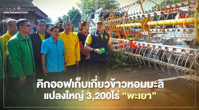 “ธรรมนัส” คิกออฟ วันเริ่มต้นเก็บเกี่ยวข้าวหอมมะลิแปลงใหญ่เมืองพะเยา 3,200 ไร่ พร้อมตรวจเยี่ยมโครงการอ่างเก็บน้ำในพื้นที่ เตรียมมือภัยแล้ง