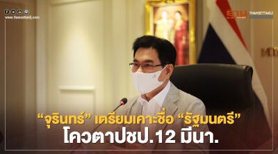 “จุรินทร์”เตรียมเคาะชื่อ “รัฐมนตรี” 12 มี.ค.นี้ ก่อนส่งให้นายกฯ ย้ำชัด ปชป.ยังยึดโควต้าจำนวนรัฐมนตรีเท่าเดิม ด้าน”วีระศักดิ์”ยังไม่รู้มีชื่อไปนั่ง รมช.คมนาคม แล้วแต่หัวหน้าพรรคจะชี้ขาด