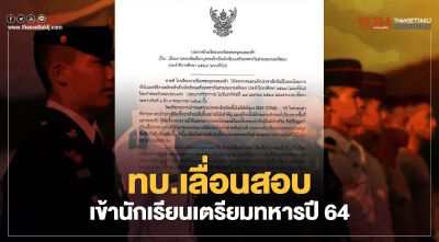 ทบ.ประกาศเลื่อนการสอบคัดเลือกเข้านักเรียนเตรียมทหาร ในวันที่ 18 เม.ย.64 และสอบรอบที่ 2 ระหว่างวันที่ 3 - 7 พ.ค. 64 ออกไปก่อนโดยไม่มีกำหนด จนกว่าสถานการณ์โควิด-19คลี่คลาย