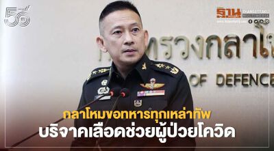 กลาโหมขอทหารทุกเหล่าทัพ บริจาคเลือดช่วยผู้ป่วยโควิด