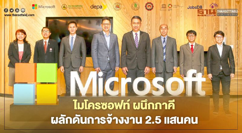 ไมโครซอฟท์ ประเทศไทย เปิดตัว ‘โครงการพัฒนาทักษะดิจิทัลเพื่อการจ้างงาน’ จับมือพันธมิตรภาครัฐและเอกชนกว่า 7 ภาคี มุ่งเป้าเสริมเรื่องการจ้างงานให้แก่คนไทย 250,000 ภายใน 1 ปี ร่วมเป็นหนึ่งในการขับเคลื่อนโครงการใหญ่ในการยกระดับทักษะดิจิทัลเพื่อคนไทยกว่า 10 ล้านคน