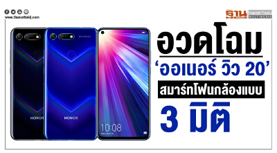 ออเนอร์ ประกาศเปิดตัว “ออเนอร์ วิว 20” สมาร์ทโฟนเรือธงรุ่นใหม่ล่าสุดที่มาพร้อมฟีเจอร์ระบบกล้องหลัง 3 มิติ ความละเอียดสูง 48 ล้านพิกเซล รวมถึงกล้องหน้า 25 ล้านพิกเซล ที่ฝังในหน้าจอ และด้วยนวัตกรรมจอแสดงผลแบบ All-View Display