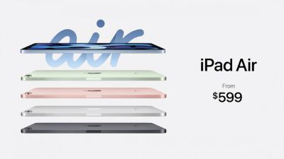 • iPad Air จะวางจำหน่ายในเร็วๆ นี้ในราคาเริ่มต้นที่ 19,900 บาท และรุ่น Wi-Fi + Cellular ในราคาเริ่มต้นที่ 24,400 บาท iPad Air ใหม่มีให้เลือกในขนาด 64GB และ 256GB พร้อมทั้งสีให้เลือก 5 สี ได้แก่ สีเงิน สีเทาสเปซเกรย์ สีโรสโกลด์ สีเขียว และสีสกายบลู