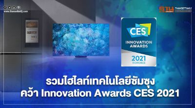 สำหรับรางวัล CES 2021 Innovation Awards ที่ซัมซุงได้รับเพื่อสร้างสรรค์วิถีชีวิตของผู้ใช้ให้ดีกว่าเดิม ได้แก่เทคโนโลยีในกลุ่มผลิตภัณฑ์หน้าจอ เครื่องใช้ไฟฟ้าภายในบ้าน สมาร์ทโฮม ซอฟต์แวร์ และแอพพลิเคชันสมาร์ทโฟน