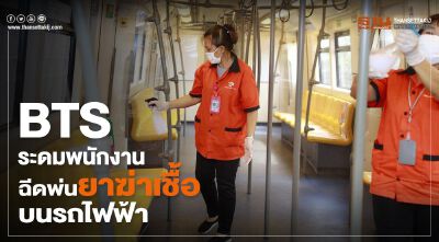 BTS ระดมพนักงานฉีดพ่นยาฆ่าเชื้อบนรถไฟฟ้า